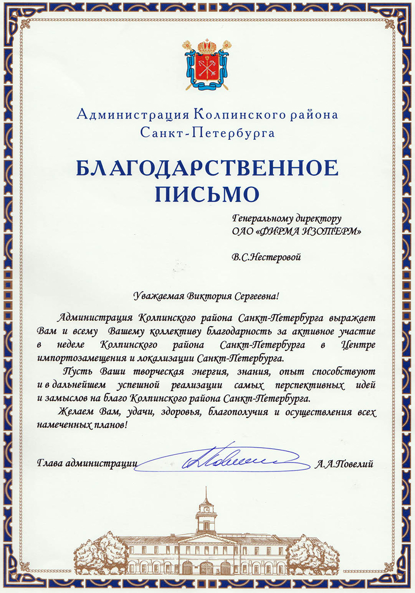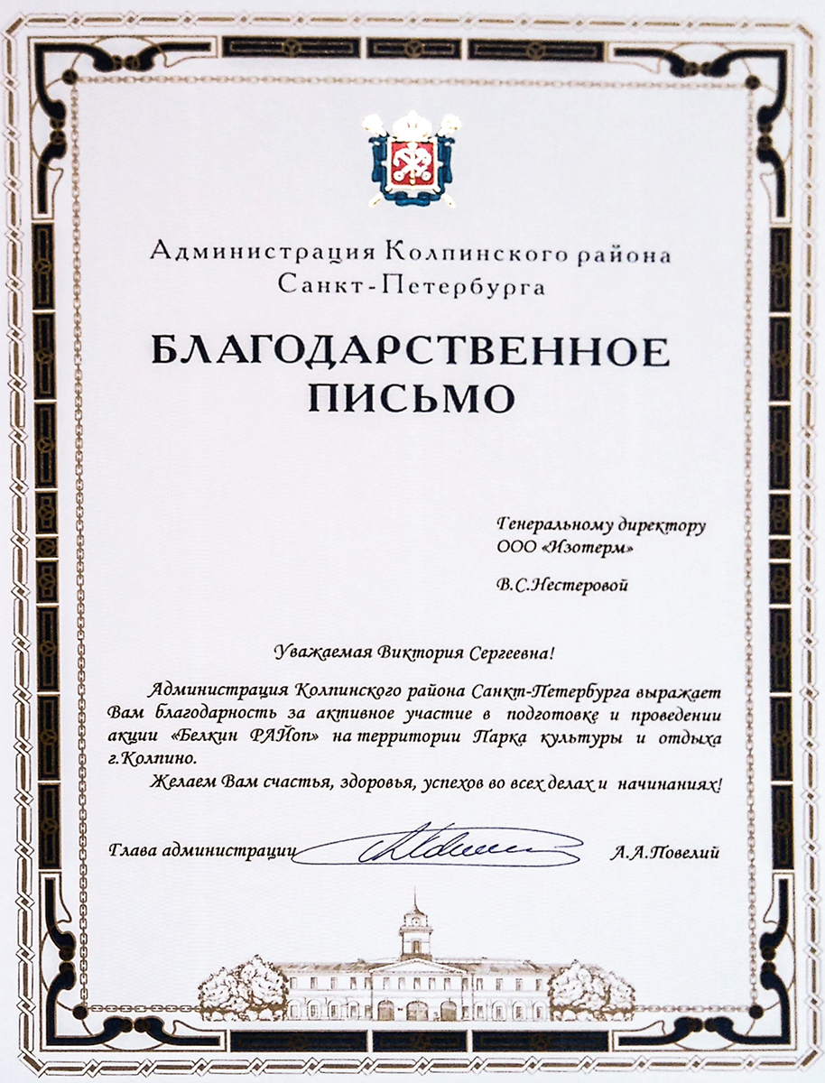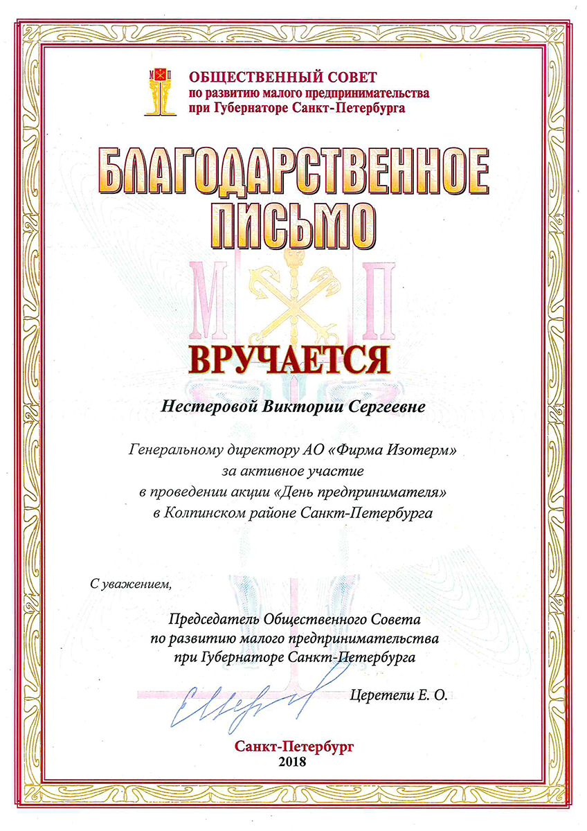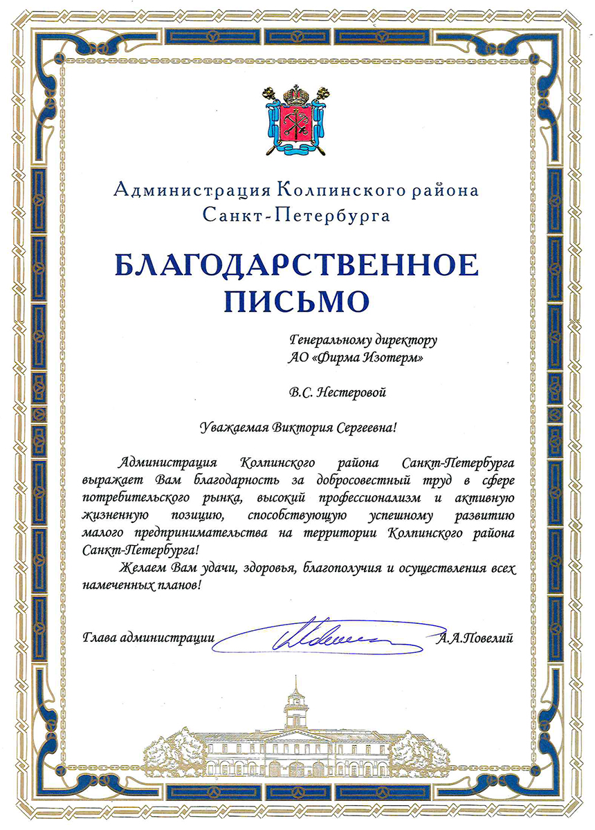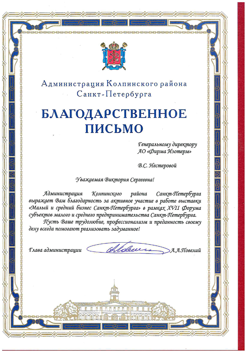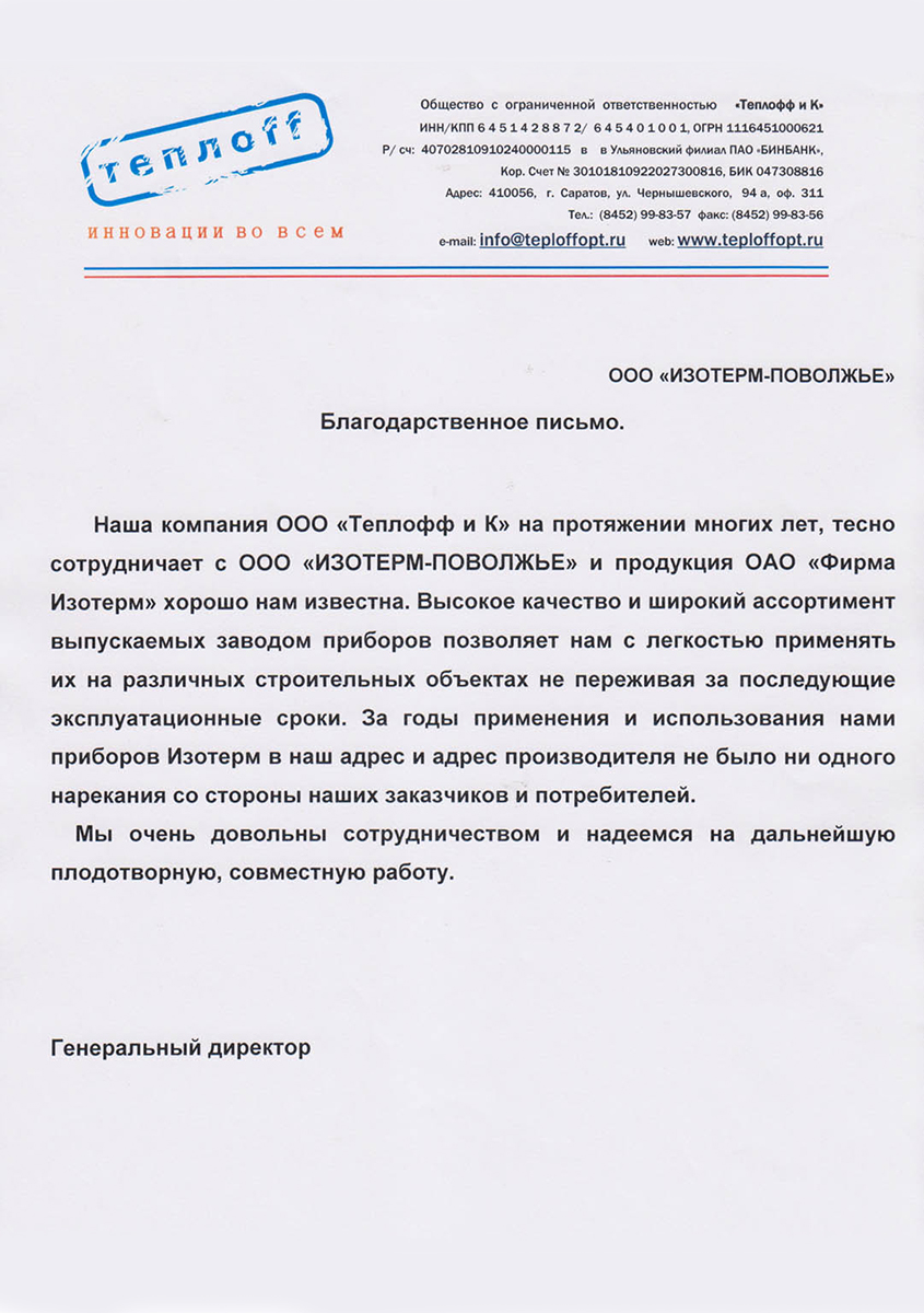 Isoterm Firm JSC received the ISO 9001 international standard certificate, which means that the company conforms with the current business, ecology and safety regulations, has professional management and high technical levels.