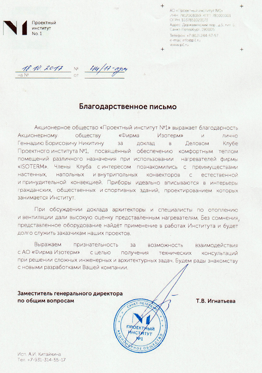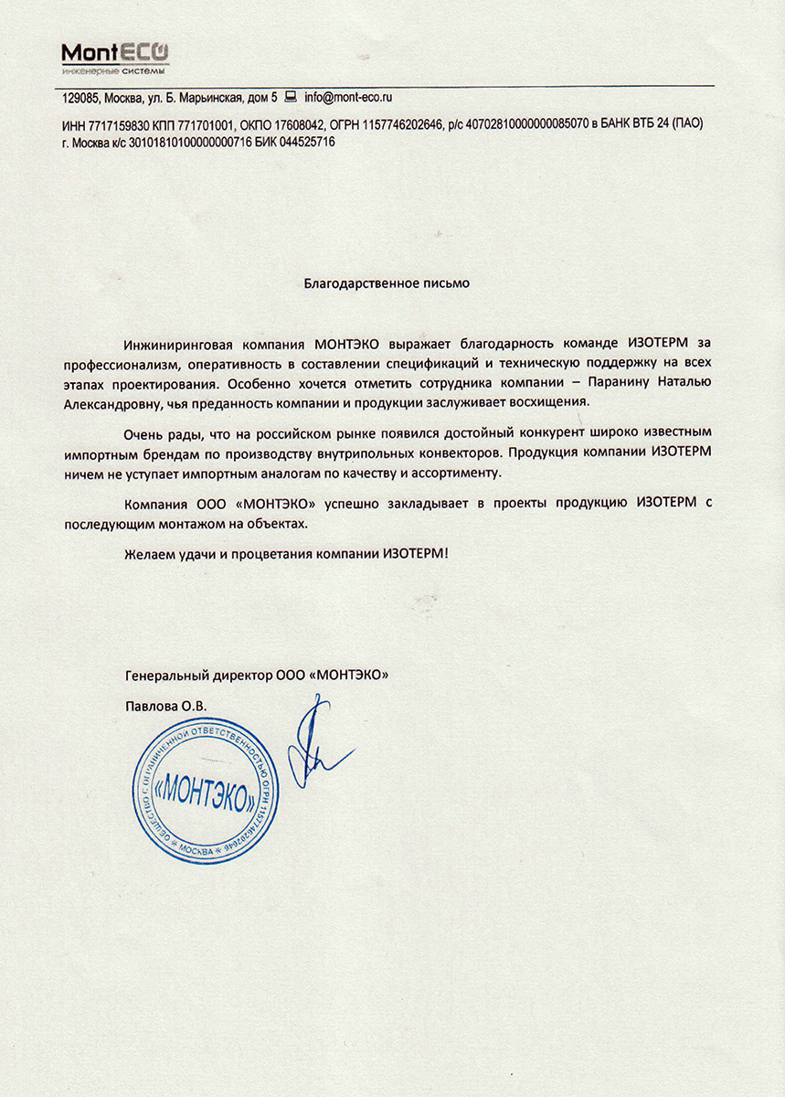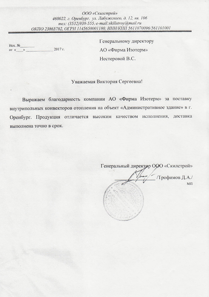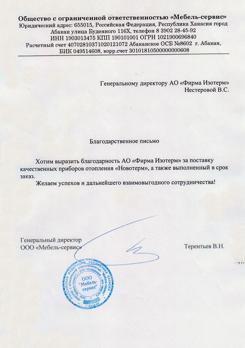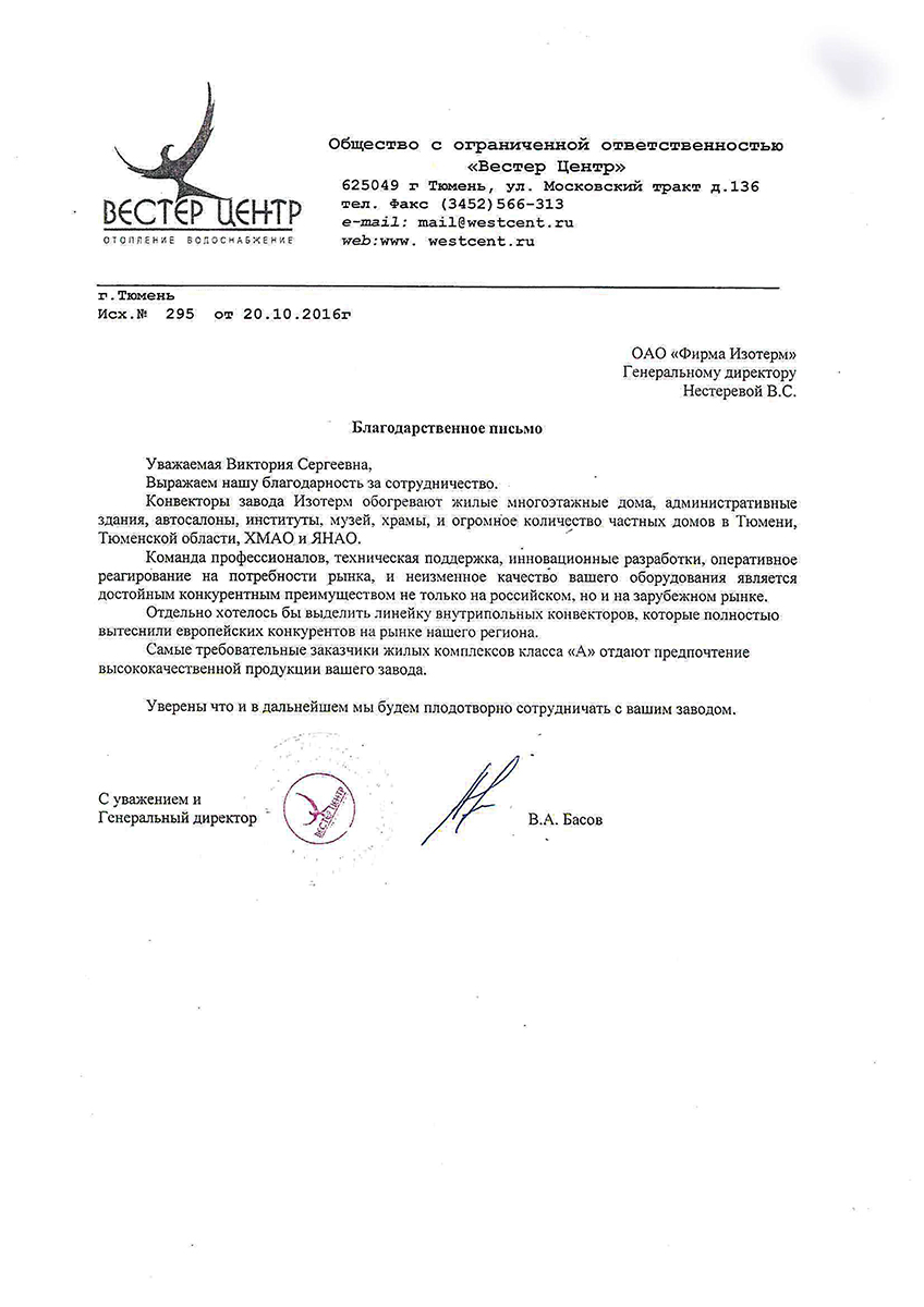 Isoterm Firm JSC received the ISO 9001 international standard certificate, which means that the company conforms with the current business, ecology and safety regulations, has professional management and high technical levels.