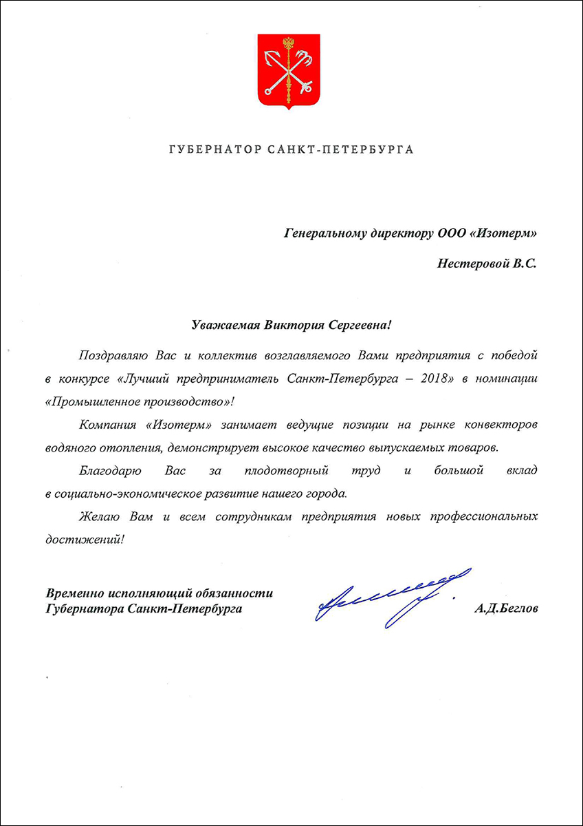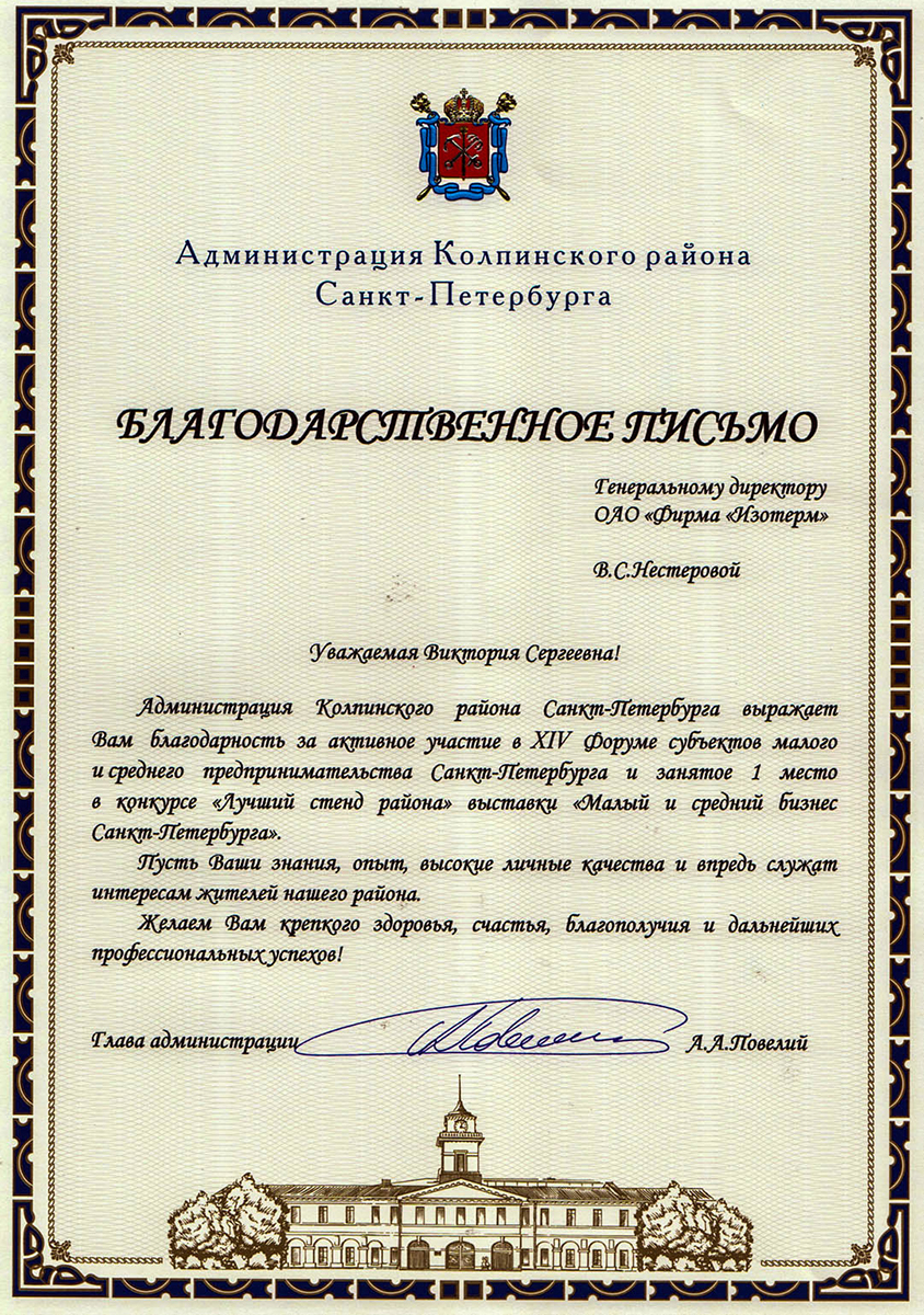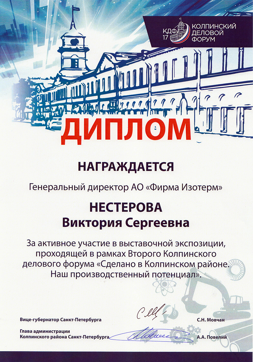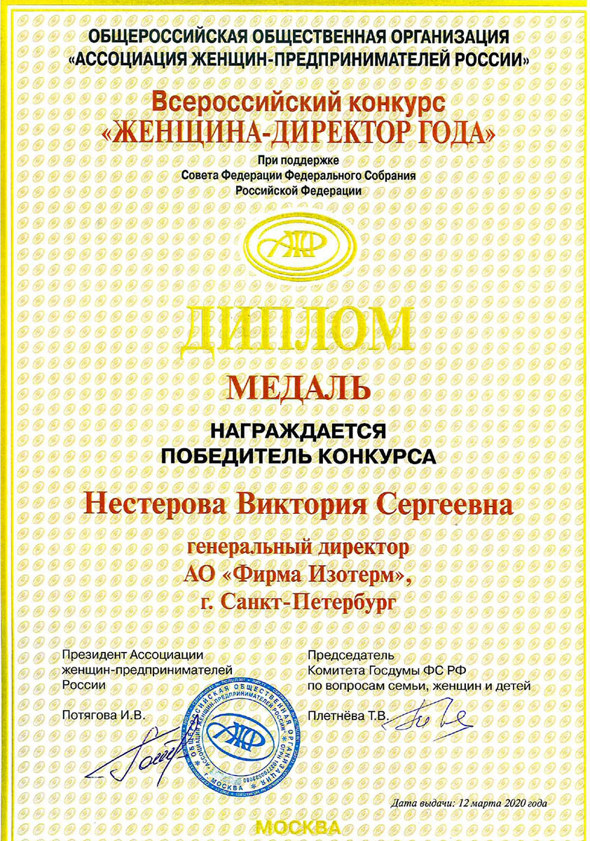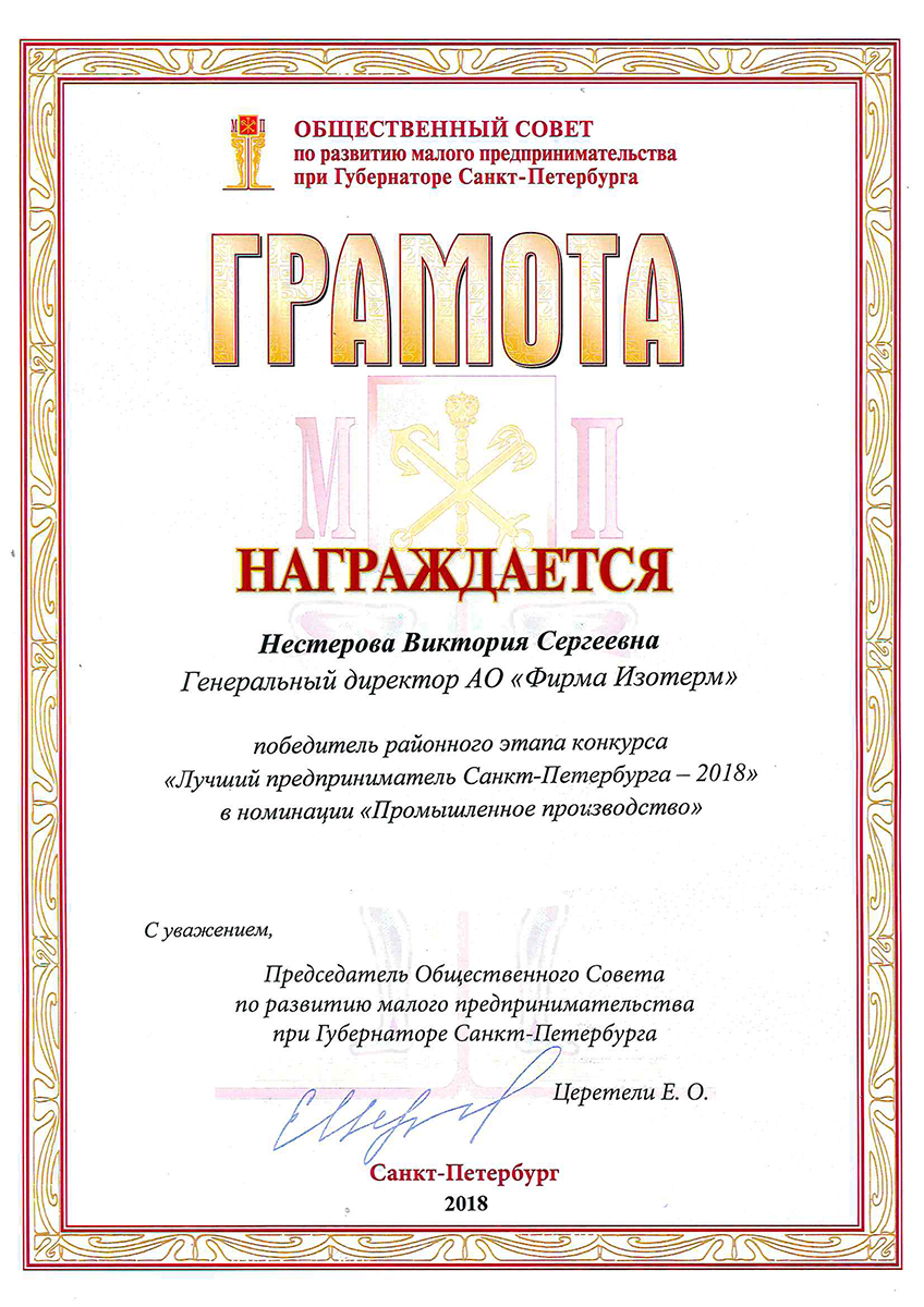 Professional and social activities of Isoterm Firm JSC are appreciated on the highest level, which can be confirmed by a great number of prizes and rewards. We are proud of our achievements and the fact that they are being recognized. We are certain that constant and dynamic improvement of our company, as well as genuine dedication to our work will allow us to maintain a leading position among manufacturers of hot-water heating appliances. We are also certain that this section of the website will be regularly updated to show information about our newest achievements.